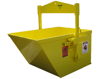 The Hippo Hopper Self-Dumping Crane Hopper is designed for use in manufacturing plants and commercial construction. The hopper can be maneuvered into place with an overhead crane and easily dumped by pulling down on the lever for a full 90 degree dump.