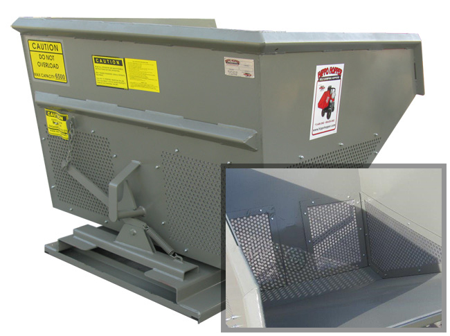 These hoppers are used in dewatering and liquid separation process. The interior basket will allow for the separation of solids from water or other liquids as they pass through the basket. The solid collect in the basket and easily dumped with a fork lift. Optional finishes – Hot Galvanized and Powder Coat Optional construction – Stainless Steel